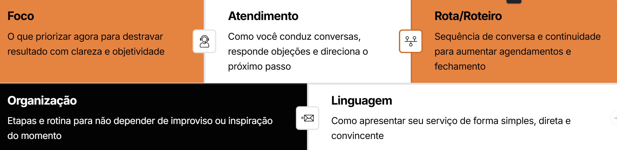 Ideal para negócios que estão começando a estruturar digitalmente o comercial ou que precisam corrigir pontos críticos como posicionamento ou organização de contatos